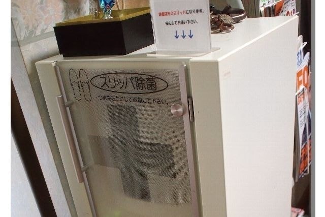 院内で履いて頂くスリッパは紫外線による除菌ケースを使用しておりますので 安心して気持ちよくお使い頂けるかと思います。